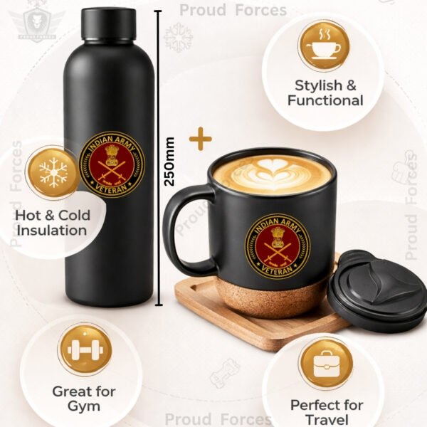 The Army Veteran Matte Finish Bottle & Coffee Mug Combo Set by Proud Forces combines premium utility, durable design, and matching everyday convenience in one complete combo.