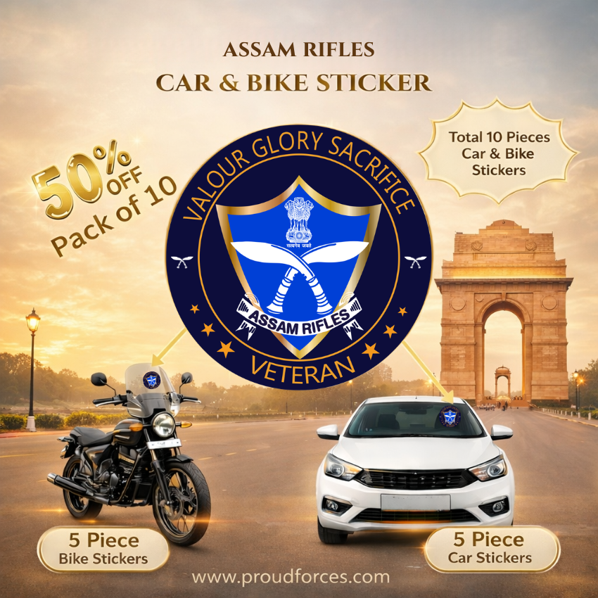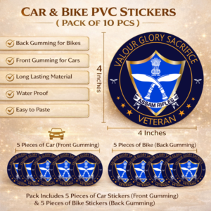 Proud Forces Assam Refles Officer Veteran Cap & Sticker Combo is a premium set designed to honour the courage, discipline, and service of Assam Refles officers and veterans. This combo includes a black officer-style baseball cap and a pack of 10 high-quality Assam Refles veteran car & bike stickers, allowing veterans to proudly showcase their identity in daily wear and on vehicles.