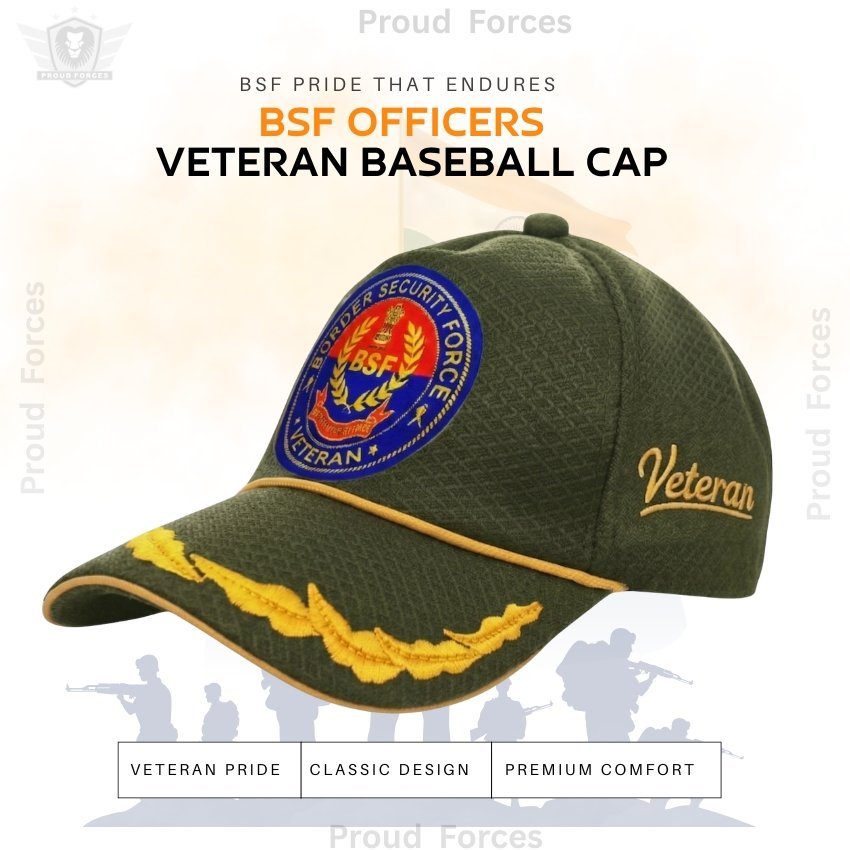 The Proud Forces Premium Quality BSF Officers’ Veteran Baseball Cap (Olive Green Color) is specially crafted to honour the courage, discipline, and dedicated service of Border Security Force (BSF) officers and veterans. Designed with a veteran-inspired emblem and premium materials, this cap is ideal for daily wear, official events, veteran gatherings, and respectful gifting, offering long-lasting comfort, durability, and pride.