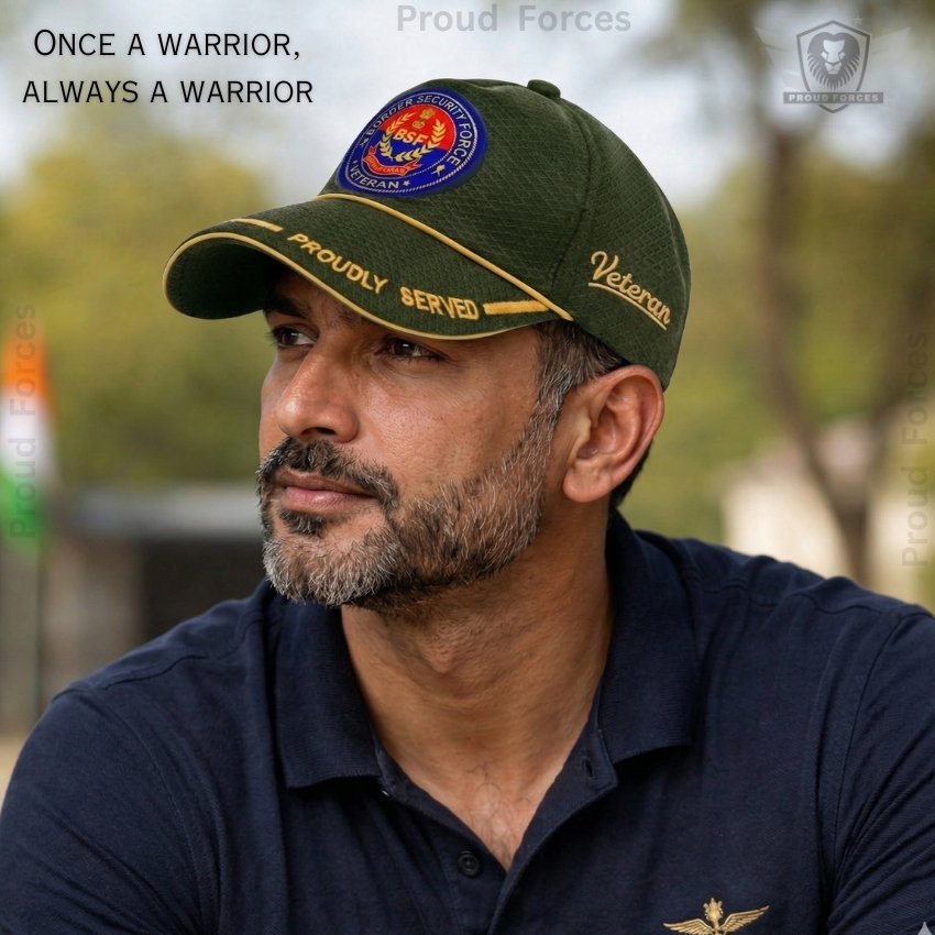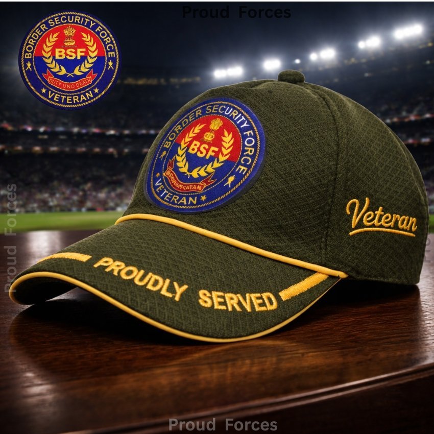 Proud Forces Premium Quality BSF Proudly Veteran Baseball Cap (Olive Green Color) is designed to honour the courage, sacrifice, and unwavering service of Border Security Force (BSF) veterans. Featuring the “Proudly Served” insignia with the BSF emblem, this premium cap is ideal for daily wear, veteran gatherings, official events, and respectful gifting—combining durability, comfort, and pride.