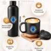 The coffee mug features a premium matte black finish and includes an attachable and detachable cork base that can be removed before washing for easy cleaning. Its leak-proof lid with slide opening makes sipping easy and suitable for tea, coffee, or other beverages throughout the day.