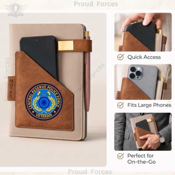 The Proud Forces CRPF Veteran Office Notebook with Phone & Pen Holder is more than a notebook. It is a symbol of discipline, duty, and service proudly carried forward into everyday life.