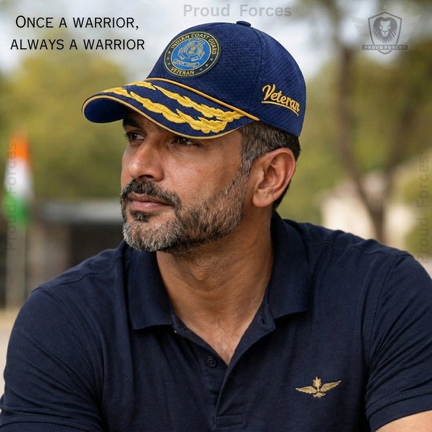 Honor the proud service and leadership of the Indian Coast Guard (ICG) with this premium blue veteran baseball cap from Proud Force. Made with Premium Barfi Net fabric, it is lightweight, breathable, and very comfortable for daily wear. A perfect cap for veterans, serving officers (off-duty), and respectful gifting.