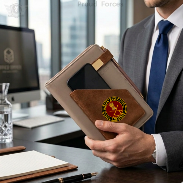 The Proud Forces Indian Army Veteran Office Notebook with Phone & Pen Holder is more than just a notebook—it is a symbol of discipline, legacy, and professional pride. Thoughtfully designed, it keeps your essentials organized while honoring the service and commitment of Indian Army veterans.