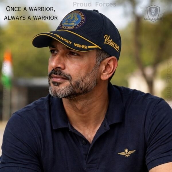 Proud Forces Premium Quality Indian Coast Guard (ICG) Proudly Veteran Baseball Cap (Black Color) is designed to honour the courage, dedication, and service of Indian Coast Guard veterans. Featuring the “Proudly Served” insignia with the ICG emblem, this premium cap is perfect for daily wear, veteran gatherings, official events, and respectful gifting—combining durability, comfort, and national pride.