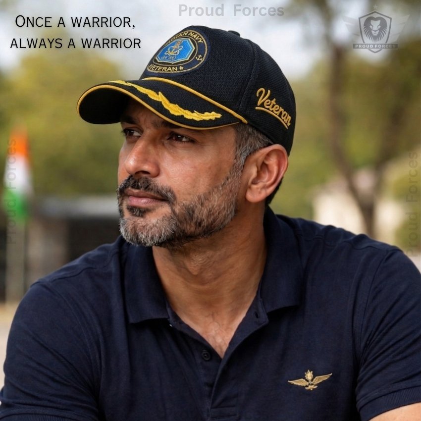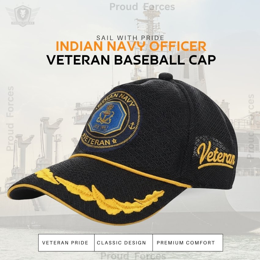 Proud Forces Premium Quality Indian Navy Officers’ Baseball Cap (Black Color) is designed to honour the courage, discipline, and service of Indian Navy veterans. This premium cap combines elegance, comfort, and respect, making it ideal for daily wear, veteran gatherings, official events, or gifting.