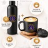 The coffee mug is designed with a premium matte black finish and includes an attachable and detachable cork base, which can be removed before washing for easy cleaning. Its leak-proof lid with slide opening allows smooth drinking and makes it suitable for both hot and cold beverages during daily use.