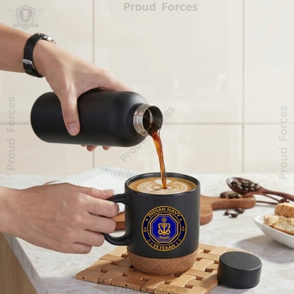 The Indian Navy Veteran Matte Finish Bottle & Coffee Mug Combo Set by Proud Forces is a premium everyday combo designed for practical use, smart presentation, and long-lasting performance. Both the insulated bottle and coffee mug feature a centered Navy Veteran sticker, creating a matching identity-inspired set suitable for office, travel, home, and gifting. The bottle offers reliable temperature retention, while the mug includes a removable cork base and leak-proof lid for comfortable daily use.