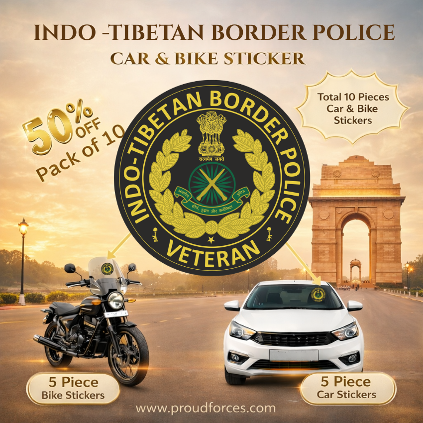 Proud Forces ITBP Officer Veteran Cap & Sticker Combo is a premium set designed to honour the courage, discipline, and service ITBP officers and veterans. This combo includes a black officer-style baseball cap and a pack of 10 high-quality ITBP veteran car & bike stickers, allowing veterans to proudly showcase their identity in daily wear and on vehicles.