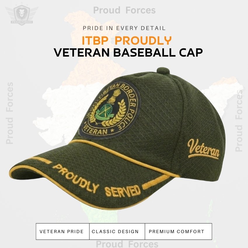 Proud Forces Premium Quality ITBP Proudly Veteran Baseball Cap (Olive Green Color) is designed to honour the courage, endurance, and dedicated service of Indo-Tibetan Border Police (ITBP) veterans. Featuring the “Proudly Served” insignia with the ITBP emblem, this premium cap is ideal for daily wear, veteran gatherings, official events, and respectful gifting—combining durability, comfort, and national pride.
