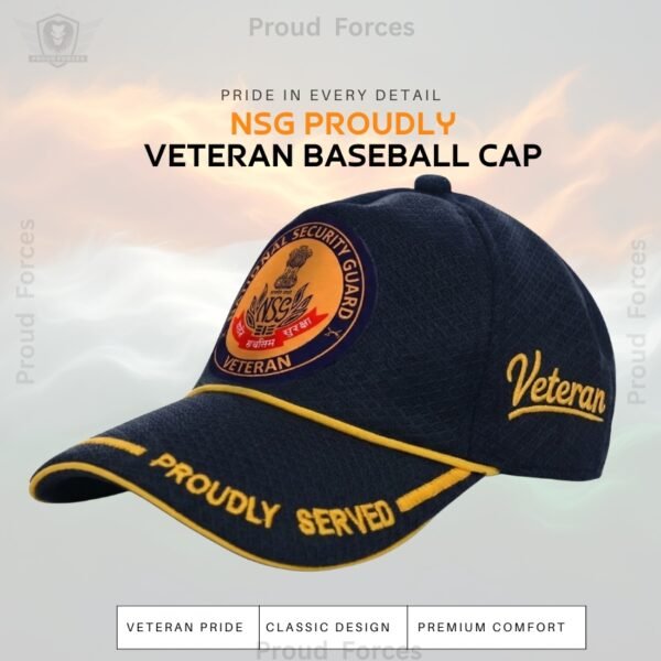 Pay tribute to the courage, precision, and unwavering commitment of National Security Guard (NSG) veterans with the Premium Quality NSG Proudly Veteran Baseball Cap (Blue Color) from Proud Forces. Crafted with respect and precision, this cap is more than headwear—it is a symbol of elite service, national security, and unmatched discipline.