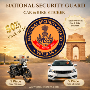 Proud Forces NSGÂ Officer Veteran Cap & Sticker Combo is a premium set designed to honour the courage, discipline, and service of NSGÂ officers and veterans. This combo includes a black officer-style baseball cap and a pack of 10 high-quality NSGÂ veteran car & bike stickers, allowing veterans to proudly showcase their identity in daily wear and on vehicles.