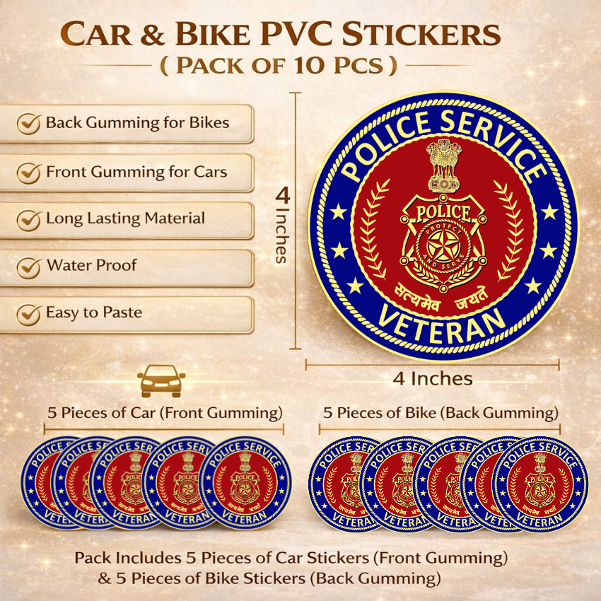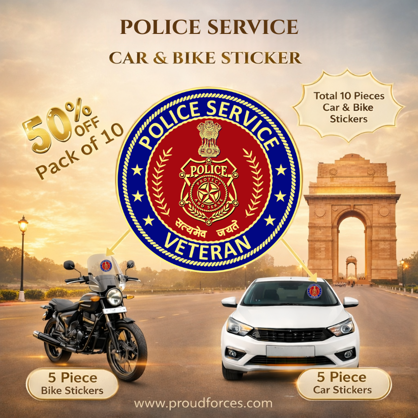 Proud Forces Police service Officer Veteran Cap & Sticker Combo is a premium set designed to honour the courage, discipline, and service of Police service officers and veterans. This combo includes a black officer-style baseball cap and a pack of 10 high-qualityPolice service veteran car & bike stickers, allowing veterans to proudly showcase their identity in daily wear and on vehicles.