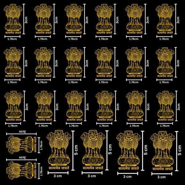 Premium Quality 24K Gold Plated Ashoka Emblem Metal Stickers – Pack of 24