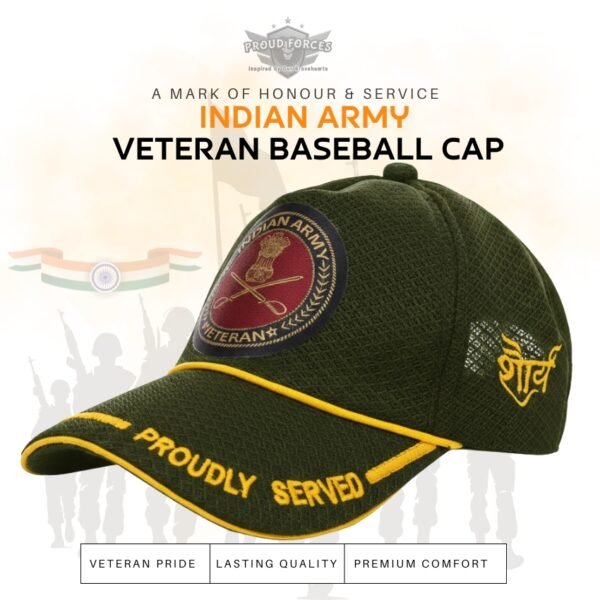 With its authentic olive green colour and “Proudly Served” insignia, the Army Proudly Veteran Baseball Cap blends tradition, comfort, and pride—making it a meaningful tribute to the legacy of the Indian Army.