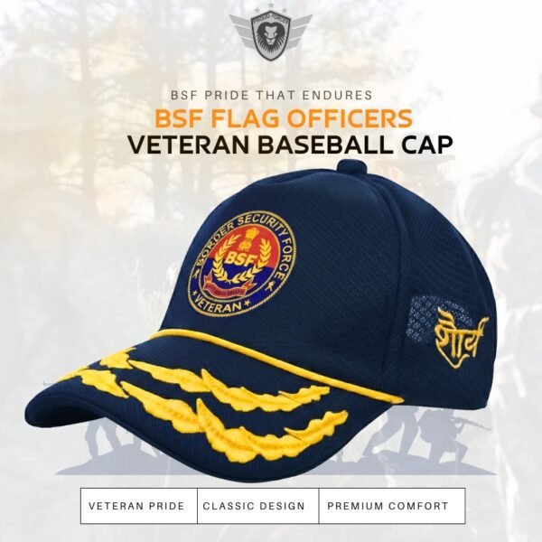 Carry forward the unmatched dedication and leadership of the Border Security Force with the Premium Quality BSF Flag Officers’ Veteran Baseball Cap (Blue Color), proudly presented by Proud Force. Thoughtfully designed for those who have served with honor, this cap is more than an accessory—it is a tribute to courage, discipline, and lifelong commitment to the nation.
