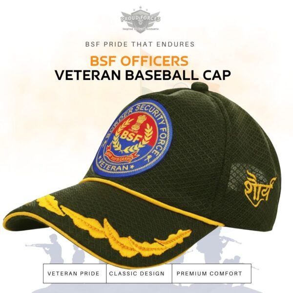 Honour the bravery, commitment, and service of the Border Security Force with the Premium Quality BSF Officers’ Veteran Baseball Cap (Olive Green Color) by Proud Forces. This premium veteran cap is not just headwear—it is a symbol of pride, discipline, and national service, designed especially for BSF personnel who have safeguarded the nation’s borders with dedication.