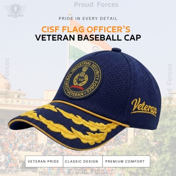 Carry the pride of uniformed service with the Premium Quality CISF Flag Officers’ Veteran Baseball Cap (Blue Color), exclusively crafted by Proud Force—a brand dedicated to honoring the spirit of India’s forces. Made from Premium Barfi Net fabric, this cap ensures exceptional breathability, lightweight comfort, and all-day ease, making it ideal for regular use in every season.