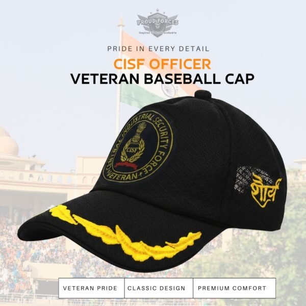 Combining premium comfort, elegant design, and meaningful symbolism, the Proud Forces CISF Officers’ Veteran Baseball Cap (Black Color) is a timeless tribute to the strength and integrity of the Central Industrial Security Force.