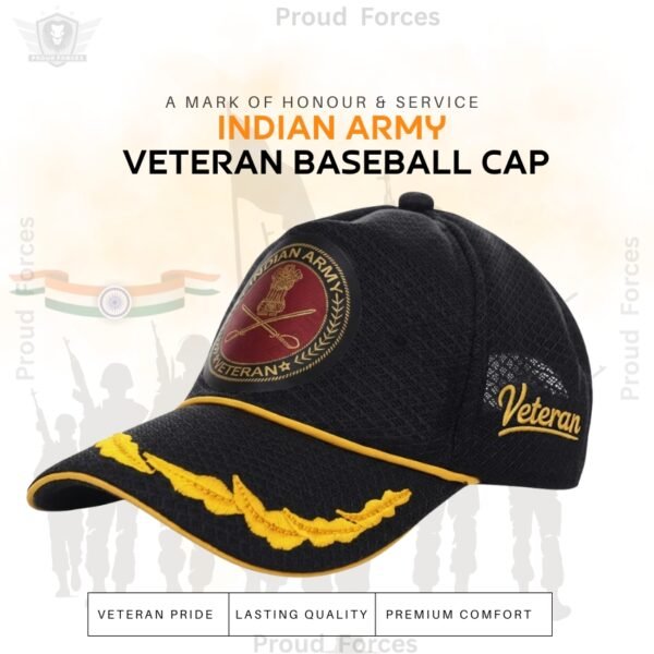 Celebrate the bravery, discipline, and legacy of Indian Army officers with the Indian Army Officer’s Veteran Baseball Cap (Black Color) – Premium Quality from Proud Forces. This cap is more than just headwear — it is a symbol of pride, honour, and dedication, reflecting the sacrifices and commitment of those who have served the nation with distinction.