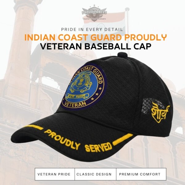 Pay tribute to the bravery, discipline, and unwavering commitment of Indian Coast Guard (ICG) veterans with the Premium Quality ICG Proudly Veteran Baseball Cap (Black Color) from Proud Forces. Crafted with precision and respect, this cap is more than headwear—it is a symbol of service, honour, and dedication to the nation’s maritime security.
