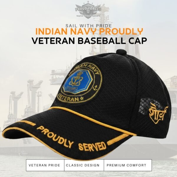 With its classic black colour and “Proudly Served” insignia, this cap blends elegance, comfort, and honour, making it a meaningful tribute to the legacy of the Indian Navy.