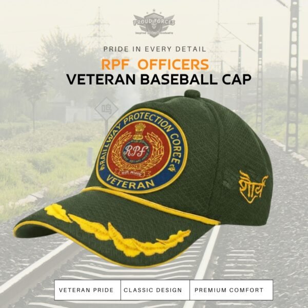 Celebrate the service, discipline, and responsibility of the Railway Protection Force with the Premium Quality RPF Officers’ Veteran Baseball Cap (Olive Green Color) from Proud Forces. More than just headwear, this cap represents honour, commitment, and the proud legacy of those entrusted with protecting the nation’s railway network.