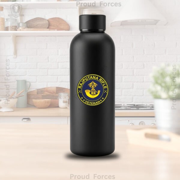The Rajputana Rifle Veteran Insulated Water Bottle from Proud Forces is designed for individuals who value strong identity, durability, and everyday utility in premium essentials. Its premium matte black finish gives the bottle a bold and refined appearance, while the Rajputana Rifle Veteran sticker placed at the center adds a distinct visual identity inspired by service, discipline, and pride.