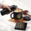 The coffee mug has a premium matte black finish and includes a detachable cork base that can be removed before washing. The leak-proof lid and slide opening make drinking easy and convenient during daily use.