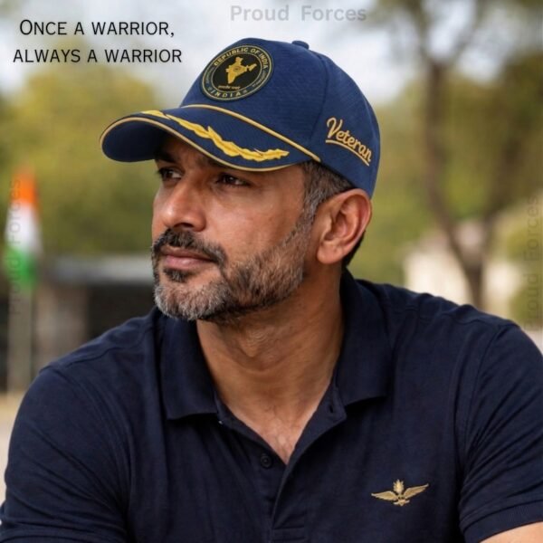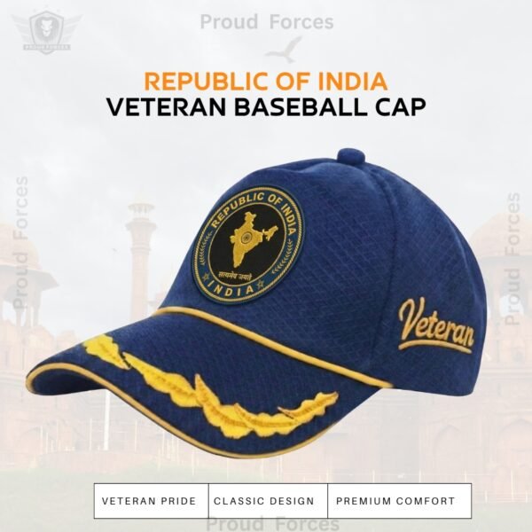 The Republic of India Officer Veteran Baseball Cap (Blue Color) – Premium Quality by Proud Forces is thoughtfully crafted to honour discipline, leadership, and the enduring spirit associated with officer identity. Built with premium-quality materials and fine finishing, this cap offers a balanced combination of comfort, durability, and respectful presentation. The blue colour gives it a calm, distinguished, and versatile look—making it suitable for both everyday use and patriotic gatherings.