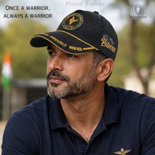 The Republic of India Proudly Veteran Baseball Cap (Black Color) – Premium Quality by Proud Forces is crafted to honour the values of service, discipline, and national respect. Designed with premium-quality materials and fine detailing, this cap serves as more than everyday headwear—it reflects pride, identity, and a strong connection to national values. The black colour adds a bold and elegant character, making it suitable for both regular wear and meaningful occasions.