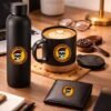 • Includes water bottle, coffee mug, and leather wallet